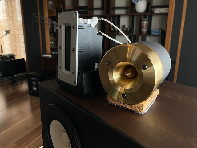 特に、大型のT500AMkⅡ は現在世界最強のアルニコ系ホーンツイーターの一つ。シンバル、ギター、シンセサイザーの連続音…… バンドネオン、ハーモニカ、トランペット、ピアノ、トライアングルを耳の近くで強打したような、そういう他を寄せ付けないぶっちぎりの世界が欲しければこれ。モンスター級のサイズ、重量……